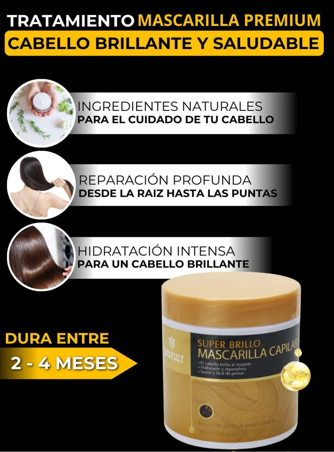 Está formulado con ingredientes naturales y de la mayor calidad: Aceite de Argán, Proteína de Trigo y Colágeno.
